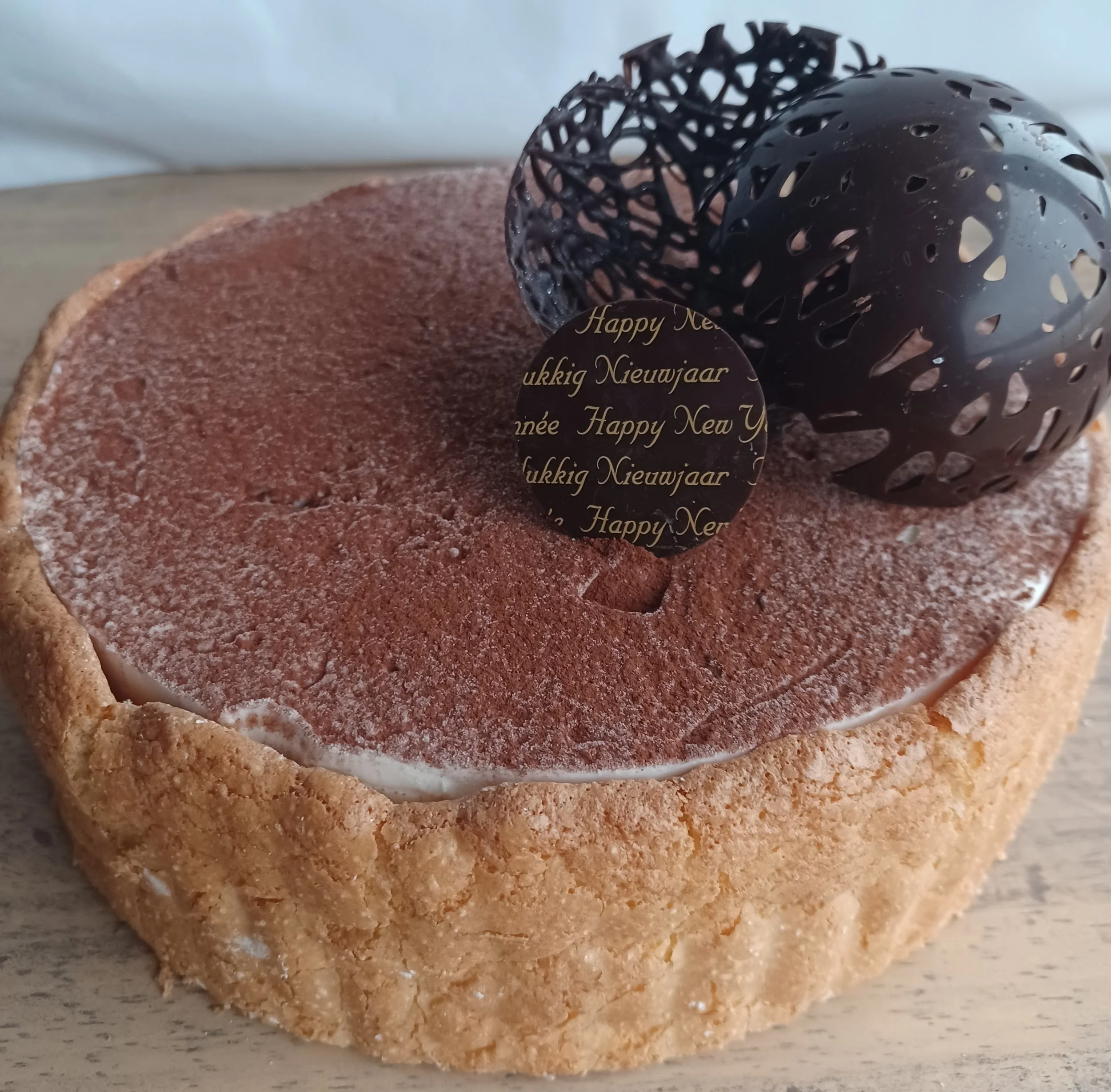 - Tiramisutaart (Savoiardi biscuit - koffiesiroop - chocolade-ijs - mokka-ijs - mascarpone-ijs met amandelextract afgewerkt met cacaopoeder en chocoladedecoraties)